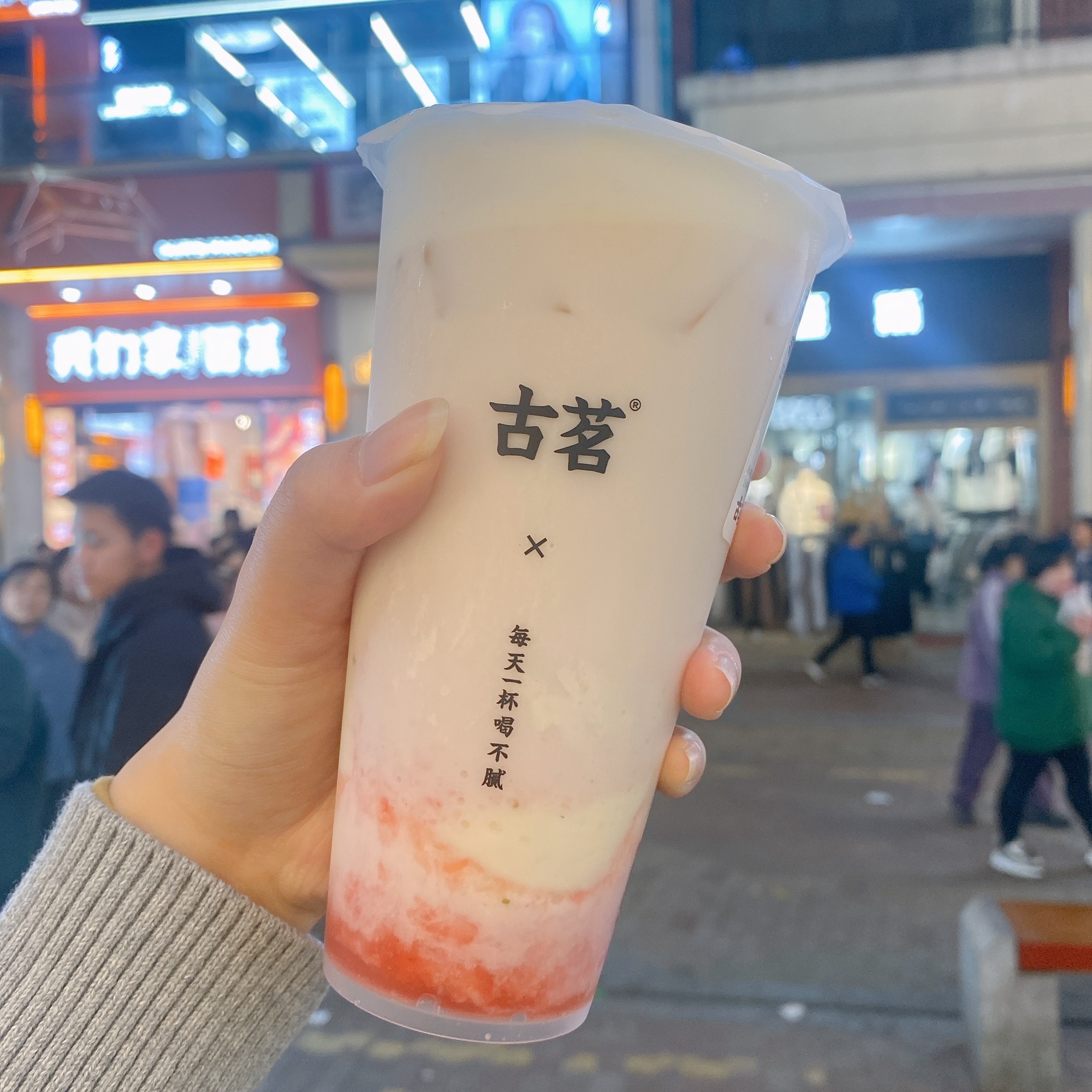 古茗出了天官赐福联名,赢麻了,而且联名的饮品味道也非常好。 草莓麻薯的草莓味道浓郁,酸甜适中,让人回味无穷。新鲜的草莓果肉搭配特制的草莓酱,使得整杯饮品都充满了草莓的香气和味道,非常适合喜欢草莓的消费者。 其次,麻薯作为这款饮品的另一大特色,口感软糯且富有弹性。