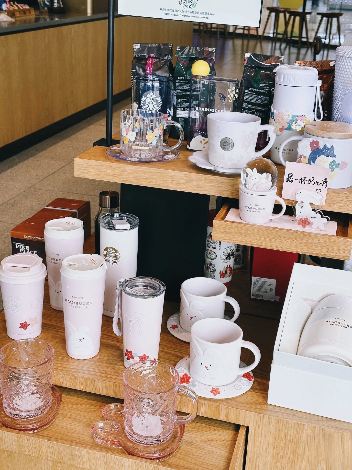 非周末的时候过来会很舒服|| - 非周末的时候过来真的会很舒服,没什么人,座位宽敞舒适,很多都是有充电的位置,适合打工人带着电脑在这发呆!过来的时候还有看到在学习的学生~ - 在清幽人少的门店坐一坐,还是很舒服的,最近新出的几款杯子也挺好看的,兔年的粉杯子和墨绿色那个都非常好看!心动想拿回家哈哈❤️ - - -