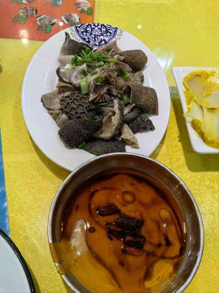 共5条「老北京芥末墩」 芥末墩真的白菜芯很新鲜外面芥末味儿很浓郁第一口就能把你眼泪出来,推荐全部撕开吃,这样都可以蘸到芥末了~ 「爆肚三合一」 选的羊肚,三合一是指肚领(7只羊取一份,清香不腻老少皆宜,嫩弹)、羊葫芦(2只羊取一份,富含烟酸,适宜胃气虚弱,反胃等人,口感脆嫩)、散丹(3只羊取一份,羊中最嫩,极品中的极品),口感最爱葫芦~味道最爱散丹店家给调得麻酱小料又浓又香,撒上了炸辣椒碎段和辣椒油,更是美味(不足的就是辣椒🌶️不算香,另外一旁羊肚真的太少) 「老北平卤煮」 里面🈶火烧(口感外软里硬,没有泡糟,很好吃)、炸豆腐(相对比较入味,外硬里软,口感也是不错)、五花肉(方方厚厚,肥瘦相间,肥肉偏多,也是一样的美味)、大肠(煮的8分烂,还是需要使劲嚼一嚼)、肺(看着很干净,基本没有腥气味,吃着很软嫩了,可以接受),汤汁虽然不是很浓稠,但是喝起来有滋有味儿~很大一碗呢!!! 「老北京炸酱面」 端上来是直接放好料的,就只有生的黄瓜丝🥒和胡萝卜丝🥕,配的黄豆酱炸酱肉沫,底下水分没有控干,所以苗条🍜基本挂不上汁儿,而且酱有些咸,属实很一般的炸酱面 环境: 店面不大,楼下有些拥挤,屋内相对很嘈杂二楼有洗手间和包房,相对会安静一些,但是还是属楼下比较有烟火气看点锅子的人比较多,冬天可能更温暖一些,桌面还算相对干净吧墙上挂着各种羊🐑的部位介绍另外就是门口真的不方便停车。 服务: 这边是两吃,进门落座后,服务员会问是吃锅子还是点菜我们选择了点菜,服务员就会让你尽快看菜单去挑选相对此件催促吧,另外确实是因为屋子小,我们正好坐在出餐口,所以服务员就一直站在那看我们吃,多少有点不情愿吧不过服务员态度挺好的,我说炸酱面挂不上酱,能不能再加点,人家二话不说就后厨又给我加了很多,这个点赞 📍位置 「老北平私房菜(槐安路店)」