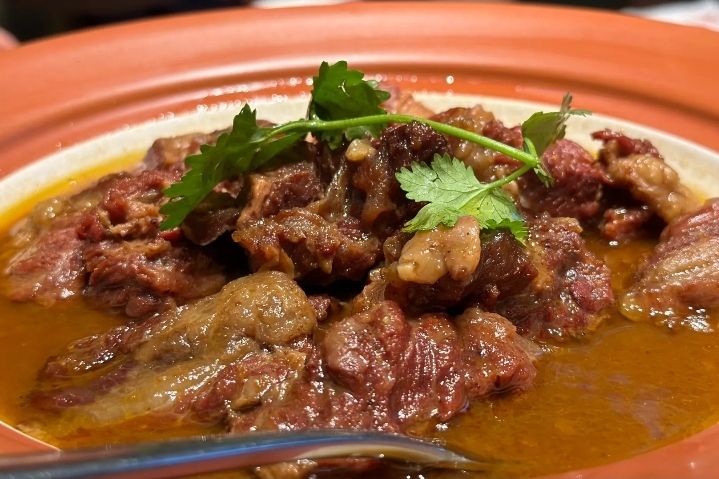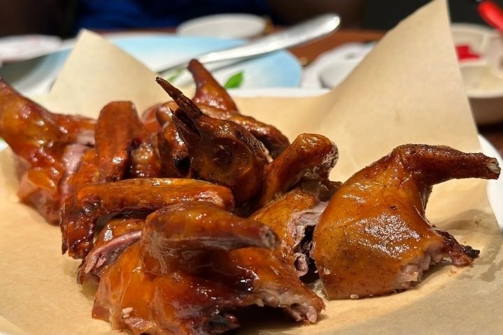 共5条环境: 隐匿于正定古城阳和门附近,身处热闹却借一院之隔闹中取静,妙不可言。门脸虽小巧,内里乾坤大,6 个包间与散座错落,布局精巧。包间还贴心设有饮茶区,尽显细腻心思,于古朴四合院中氤氲着独特韵味。 服务: 服务节奏把控到位,添菜上水及时又不突兀,店员仿若深谙食客心思,时刻关注用餐进程,周到贴心,不给人丝毫怠慢之感,让用餐全程舒适自在。 菜品: 菜品味道堪称上乘,各有千秋。陈皮沙茶堡牛腩砂锅炖牛肉,历经 4 小时慢熬,醇厚鲜香,是招牌首选;砂锅焗九年百合应季应景,契合秋日氛围;醋烹苏尼特小肥羊,独头蒜片妙笔生花,抢尽羊肉风头;烤乳鸽外焦里嫩、酥脆可口。美中不足是烹炒馋嘴牛蛙,勾芡后弹性略逊现杀口感,但整体瑕不掩瑜,值得再次光顾品味。