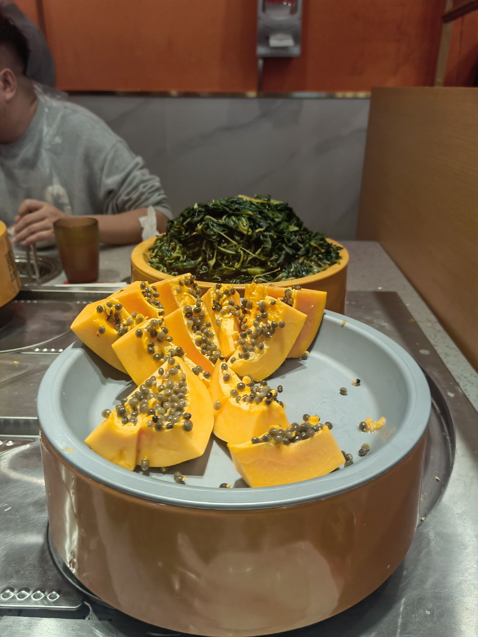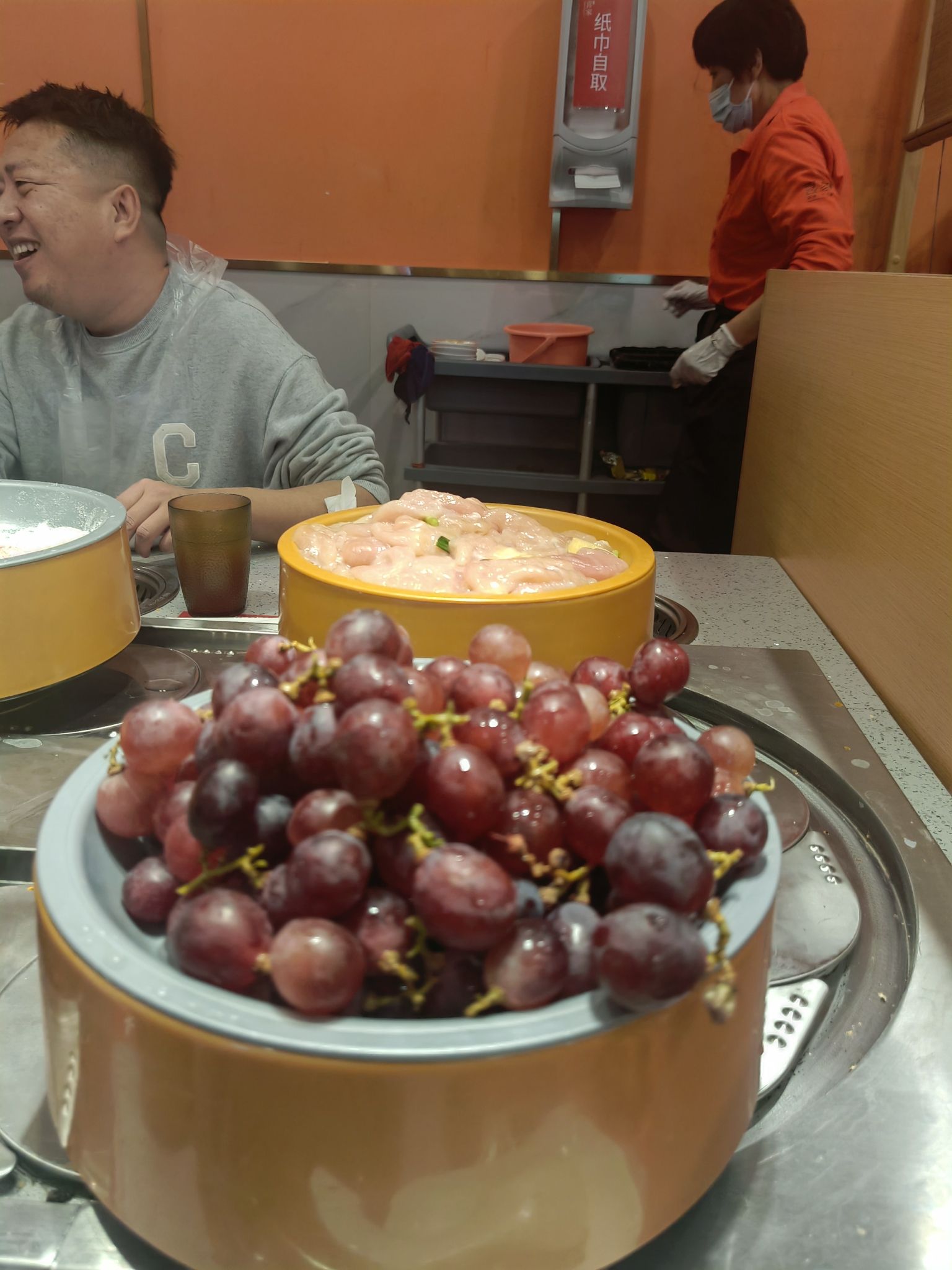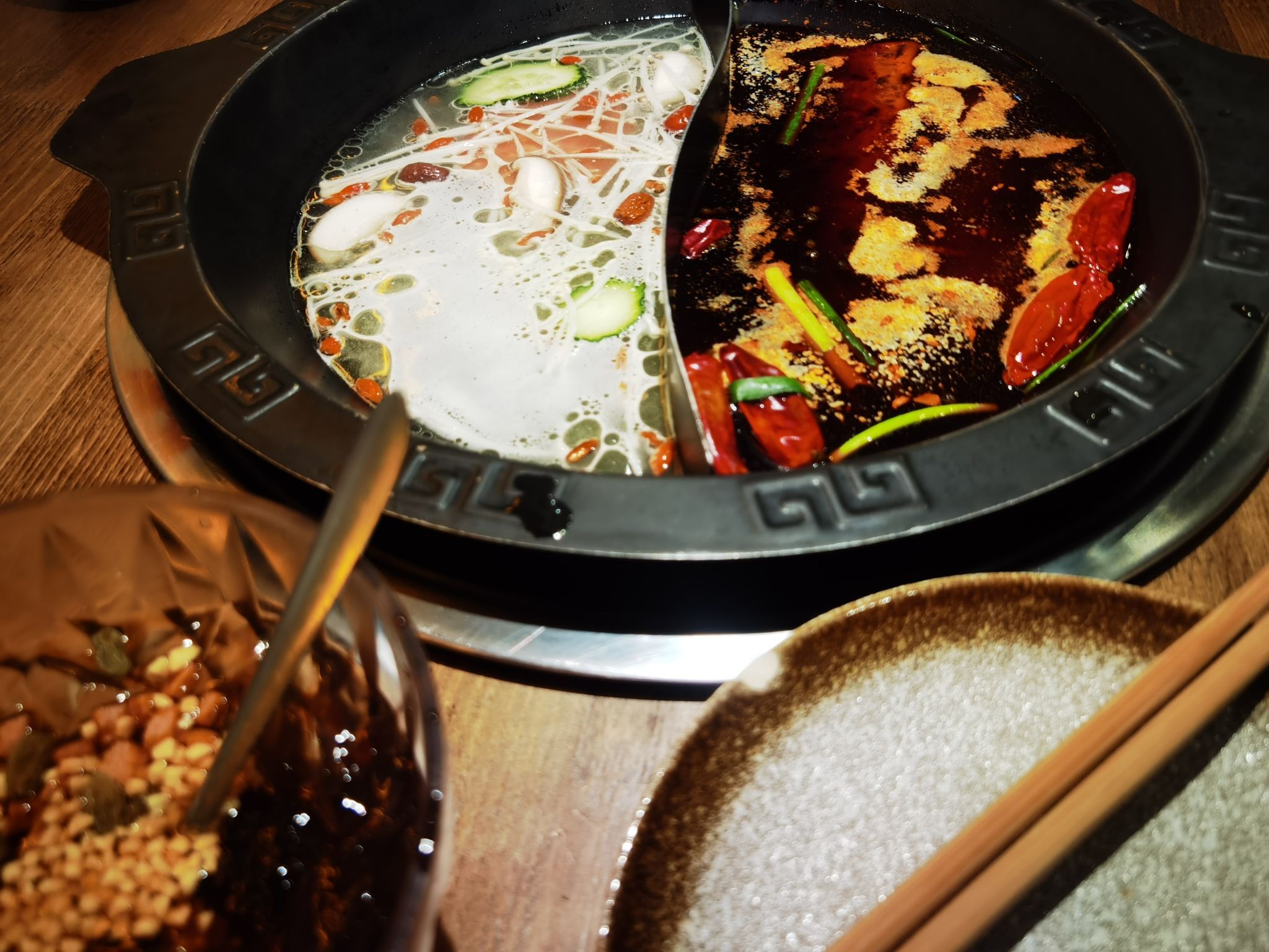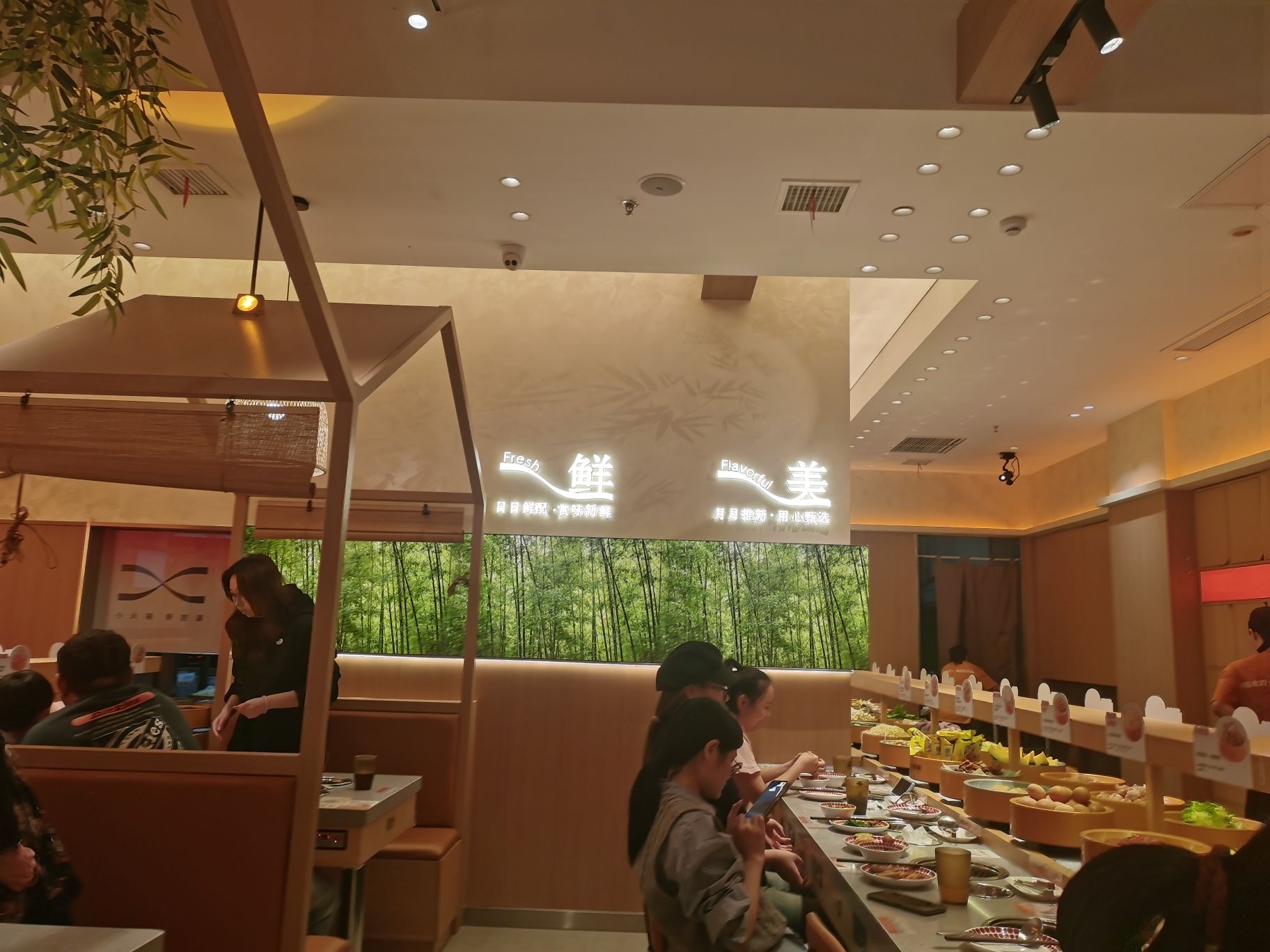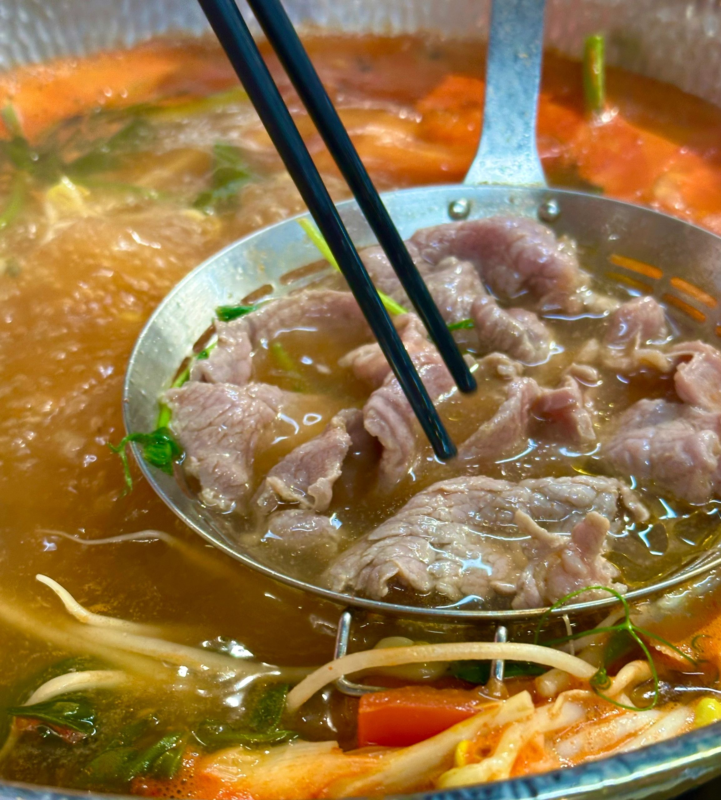 🍴菜品:真的特别特别全,几乎没有办法全部吃遍 光新鲜水果就有7/8种,草莓又大又甜还完全不限量,除此之外的炸货也特别多,感觉不吃火锅光吃小食也能吃饱,涮品也很新鲜,鸭肠、乌鸡卷、龙利鱼都有,特别推荐 🥂环境:新开业的店干干净净,刚开放的时候去没什么人,后面慢慢就变多了 💁服务:小哥给安排在出餐口的位置,拿菜特别方便,阿姨收垃圾也收的很及时,好评好评!