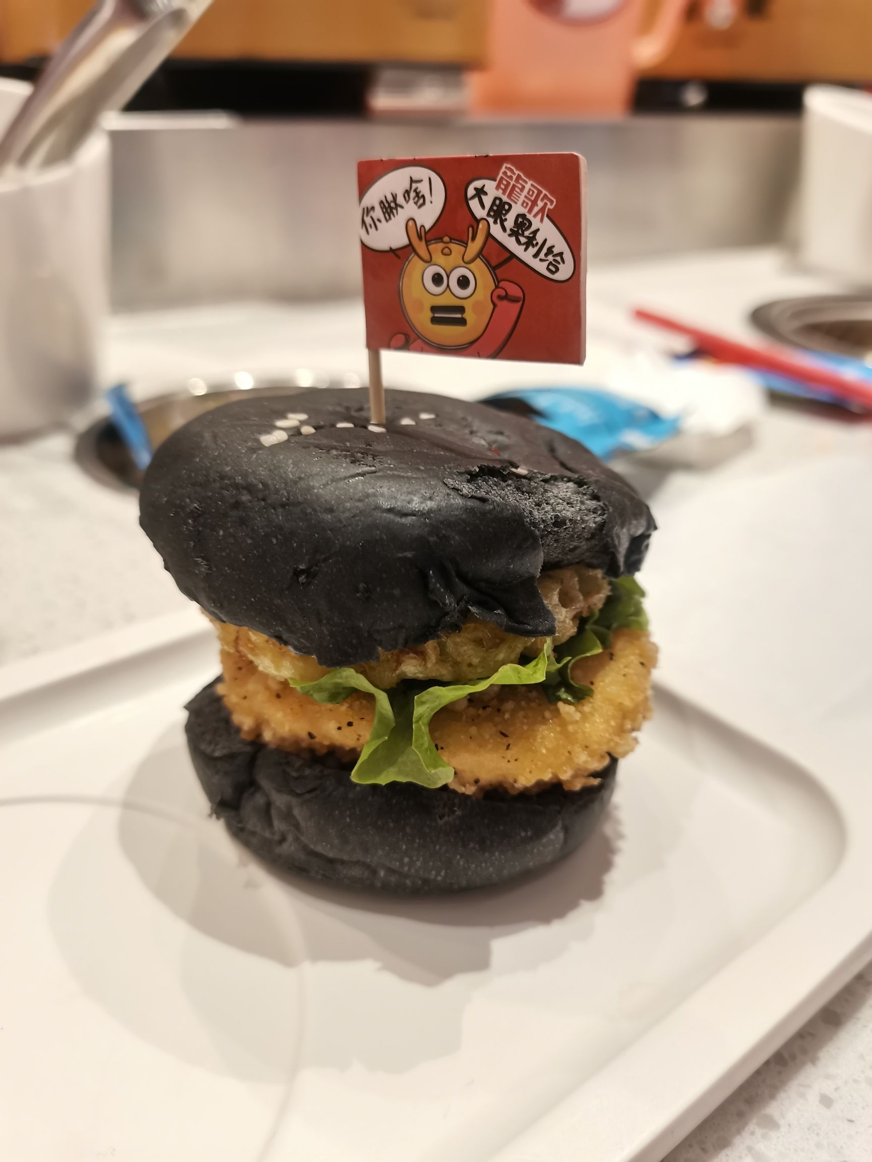 共5条🥂环境位置在金鼎8楼,一上扶梯就能看到比较好找,去晚了会排队。 💁服务店员的态度都很好,会主动询问你的需求。 🍜口味主要推荐黑椒鸡柳,涮完之后比较嫩滑黑椒味也足,还有那个黑色的小汉堡也好吃,里边夹心是有一片菠萝很解腻,美中不足的是这个只在旋转线上出现了一次比较抢手。
